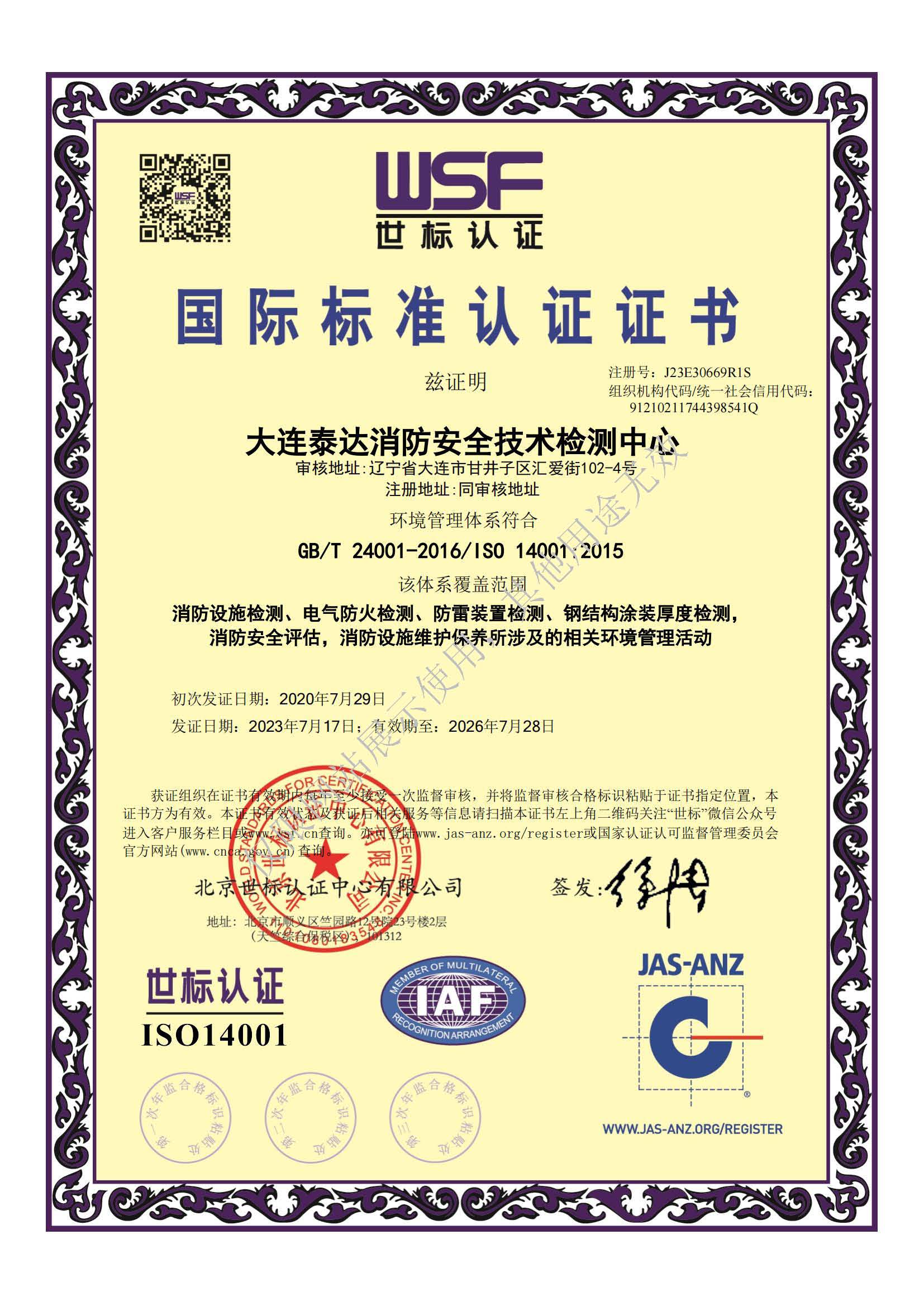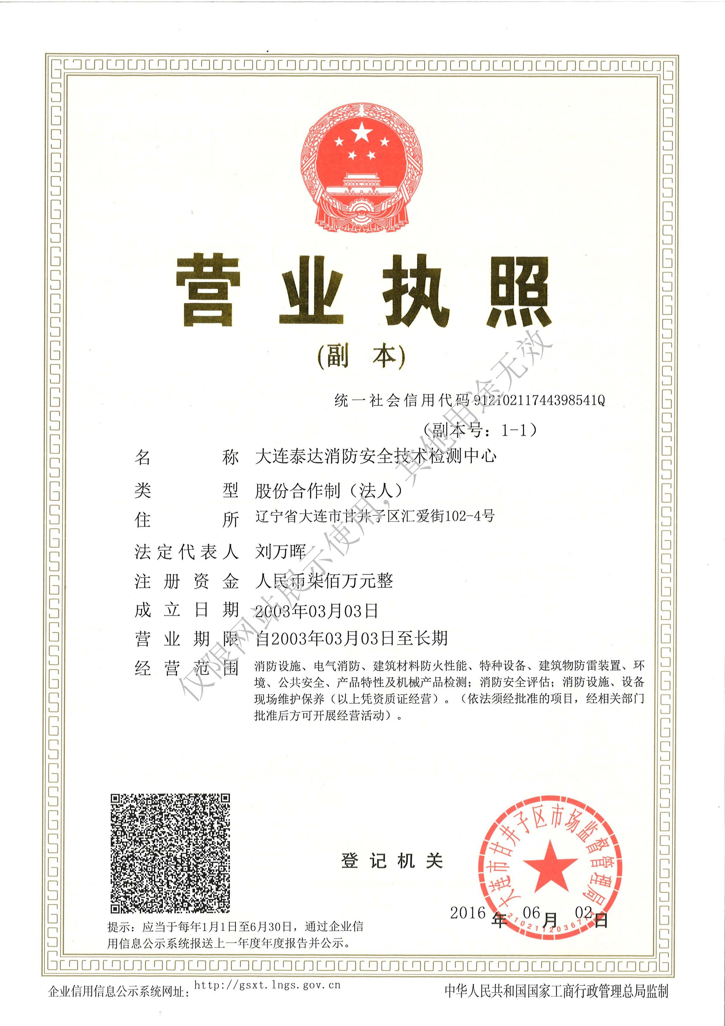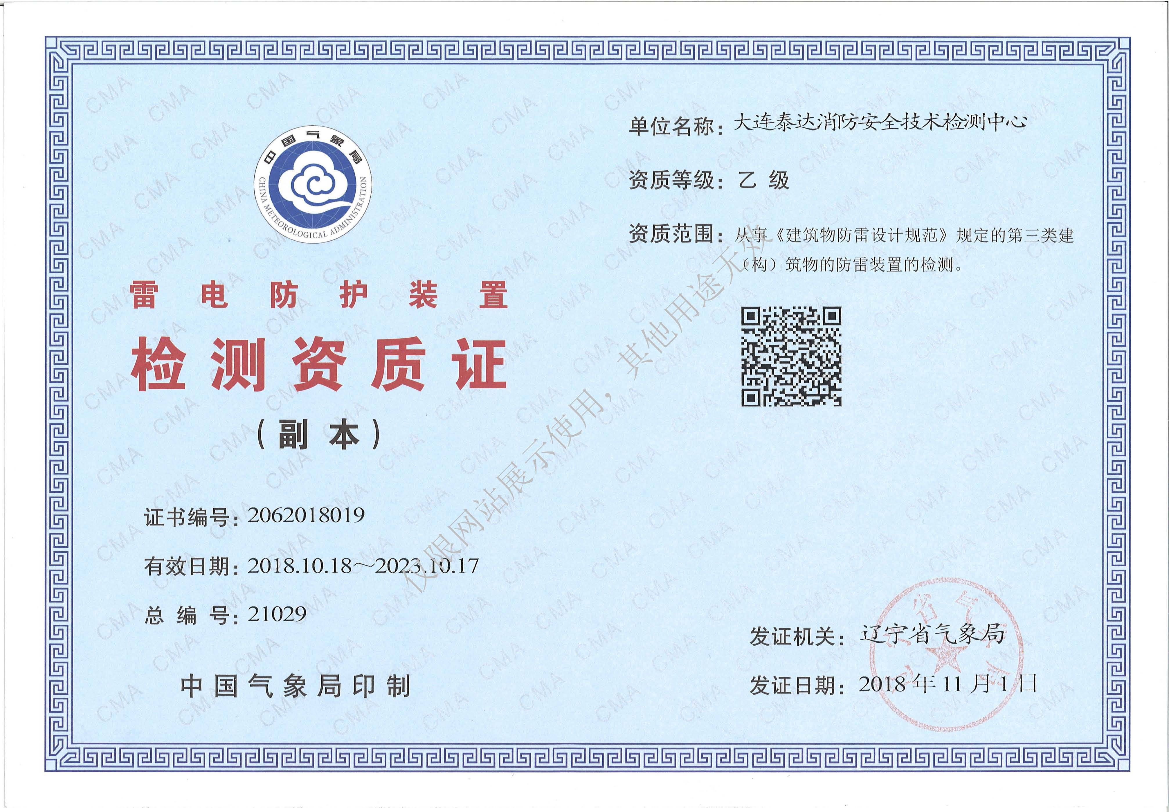· 是經(jīng)“社會消防技術(shù)服務(wù)信息系統(tǒng)”備案并公示的消防技術(shù)服務(wù)機(jī)構(gòu),已取得中國氣象局頒發(fā)的雷電防護(hù)裝置檢測資質(zhì)證書、遼寧省質(zhì)量技術(shù)監(jiān)督局審核批準(zhǔn)的檢驗(yàn)檢測機(jī)構(gòu)資質(zhì)認(rèn)定證書(CMA)及包括消防檢測、電氣檢測、雷電防護(hù)裝置檢測、防火涂層厚度檢測等在內(nèi)的200余項(xiàng)檢驗(yàn)檢測能力,取得大連市應(yīng)急管理局頒發(fā)的安全生產(chǎn)標(biāo)準(zhǔn)化證書,獲得質(zhì)量管理體系、環(huán)境管理體系、職業(yè)健康安全管理體系認(rèn)證證書,是經(jīng)備案的高新技術(shù)企業(yè),可獨(dú)立出具具有證明作用的檢測報(bào)告。